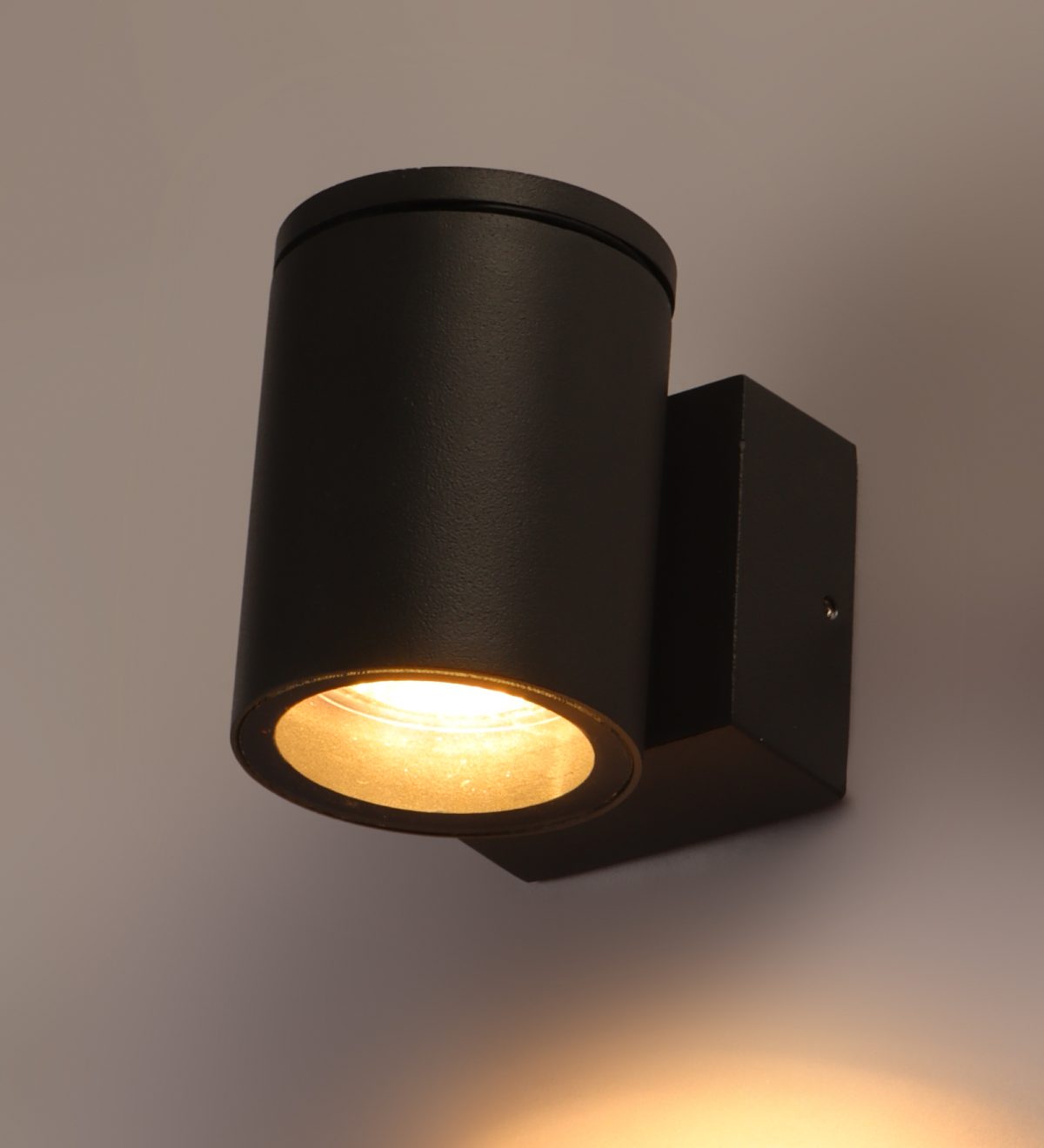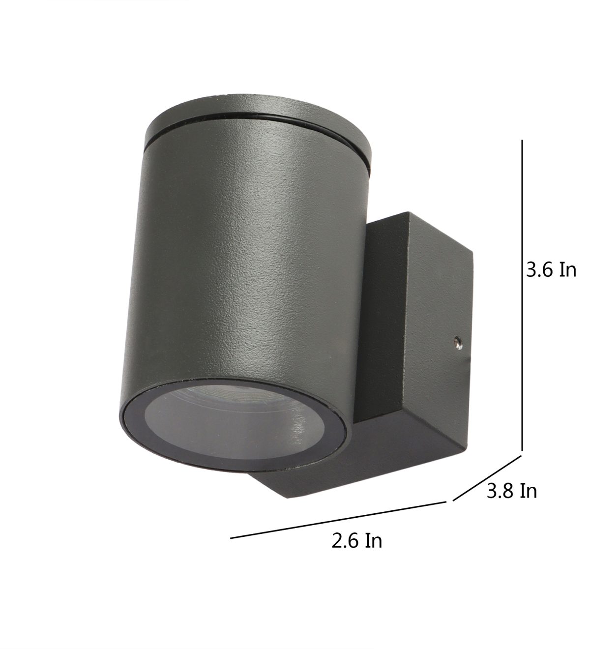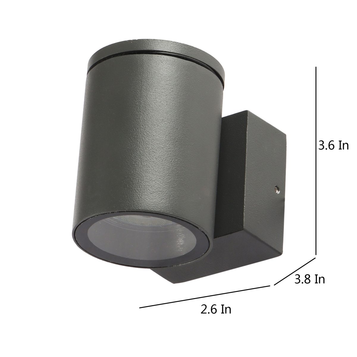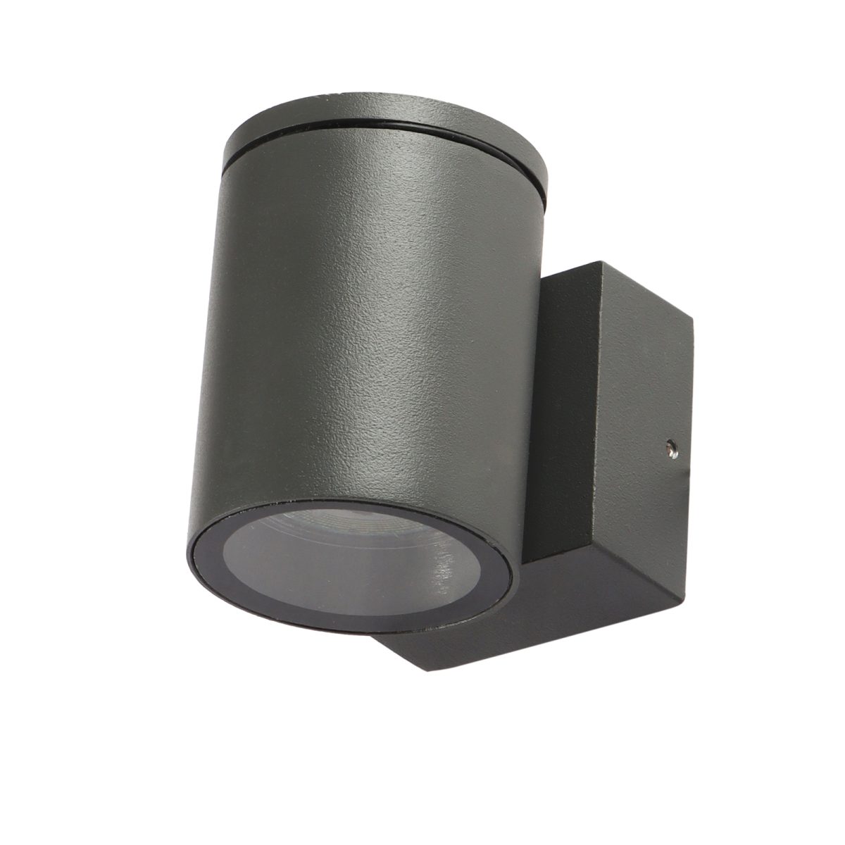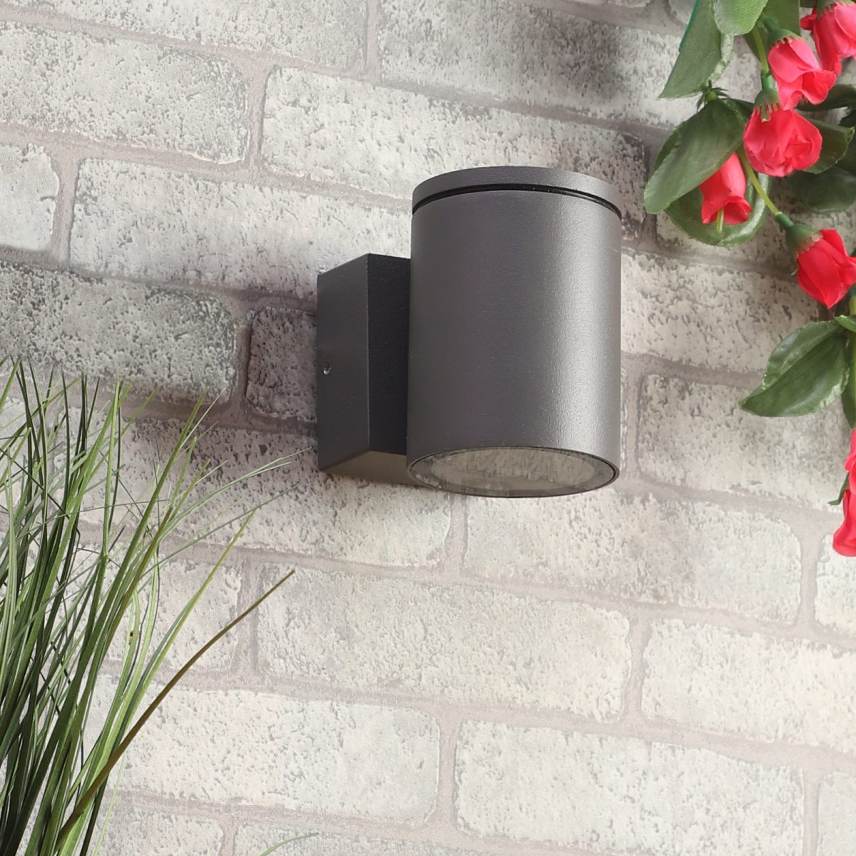 Aluminium die cast one of the top selling export quality cylindrical wall light available in a sophisticated grey finish, perfect to use outdoors. It is maintenance free, only the change of lamp is required which is available locally everywhere. Suitable for use in wet areas like swimming pools and spas. But equally as stunning when installed indoor around the house. Ideal to high light the exterior of your property and placed either side of an entrance for instance. Can be dimmed if used with a dimmable lamp. Rated at IP 54 providing protection from water spray. Lamp not included.