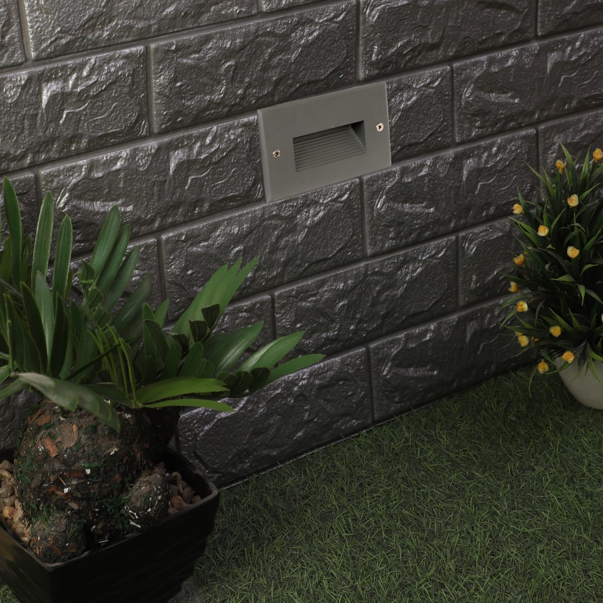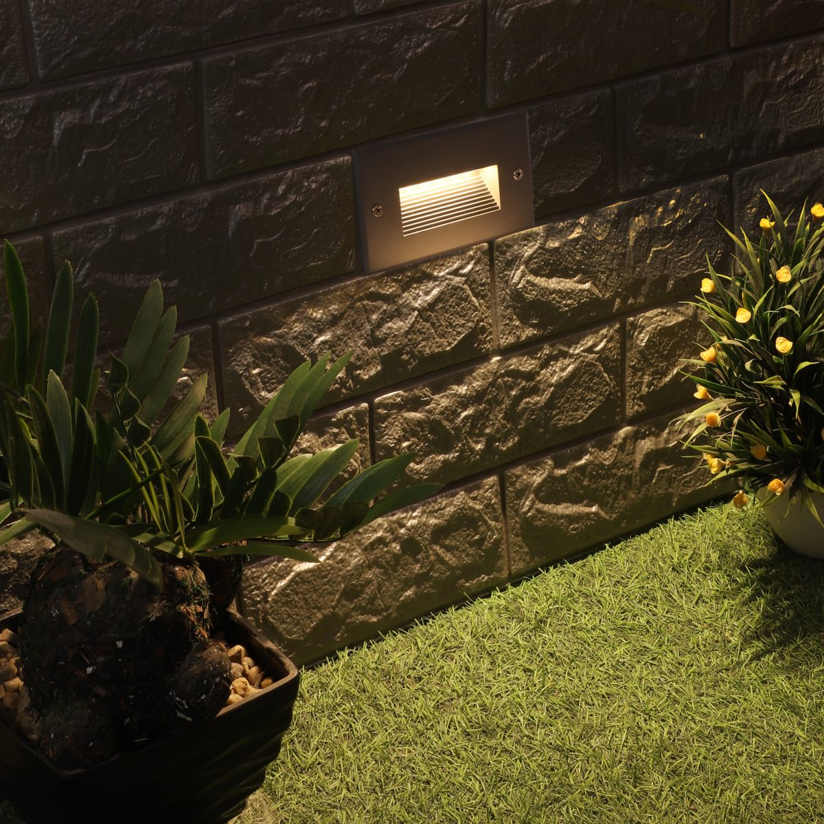Compact, sleek aluminium die cast foot light using high quality LED and driver with high success rate having less than 0.5% replacement. Comes with a PVC casing, so that the light can easily be taken out from the wall without damaging it. It can be used in both indoor and outdoor applications such as Stair case walls, steps, passage to staircase, path way, drive way, terrace walls, outdoor walls, boundary walls, open parking, stilt parking, basement parking. It is usually installed at 12 to 15 inches height from the floor.
