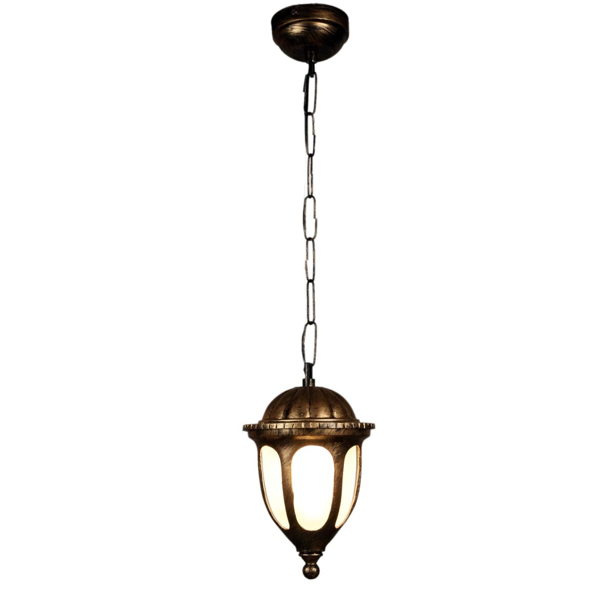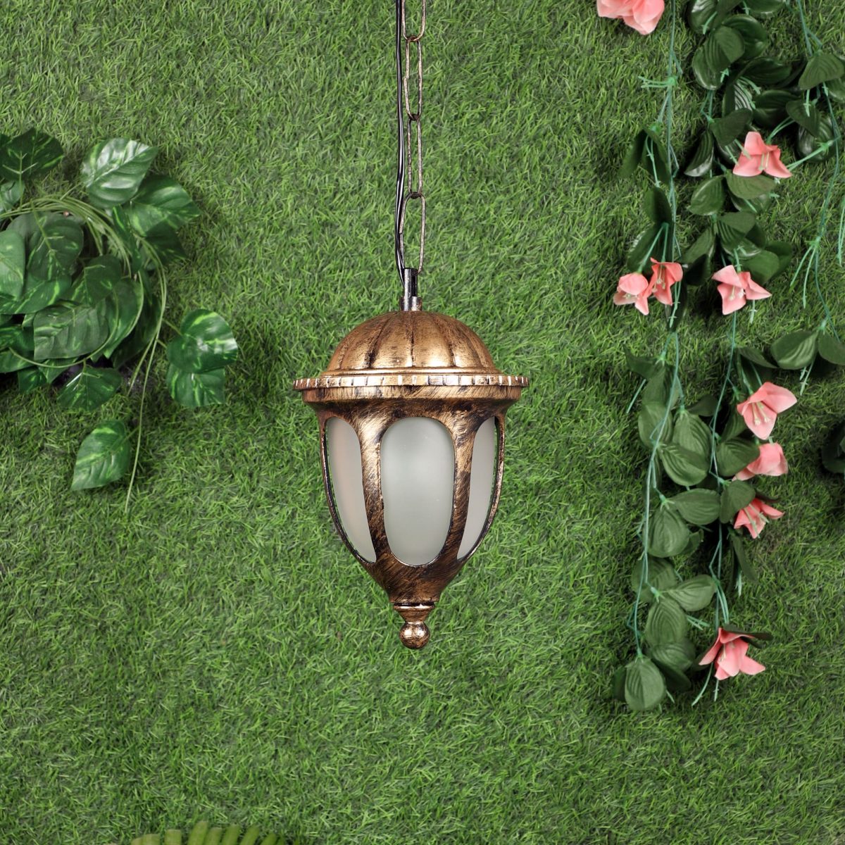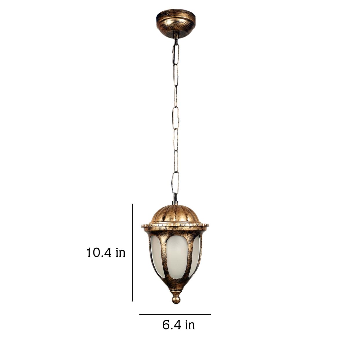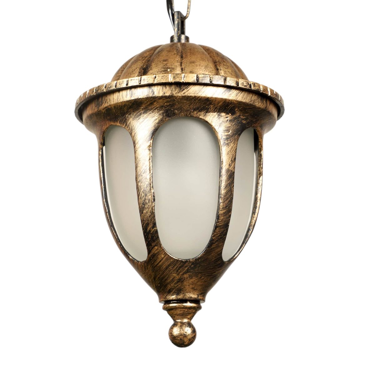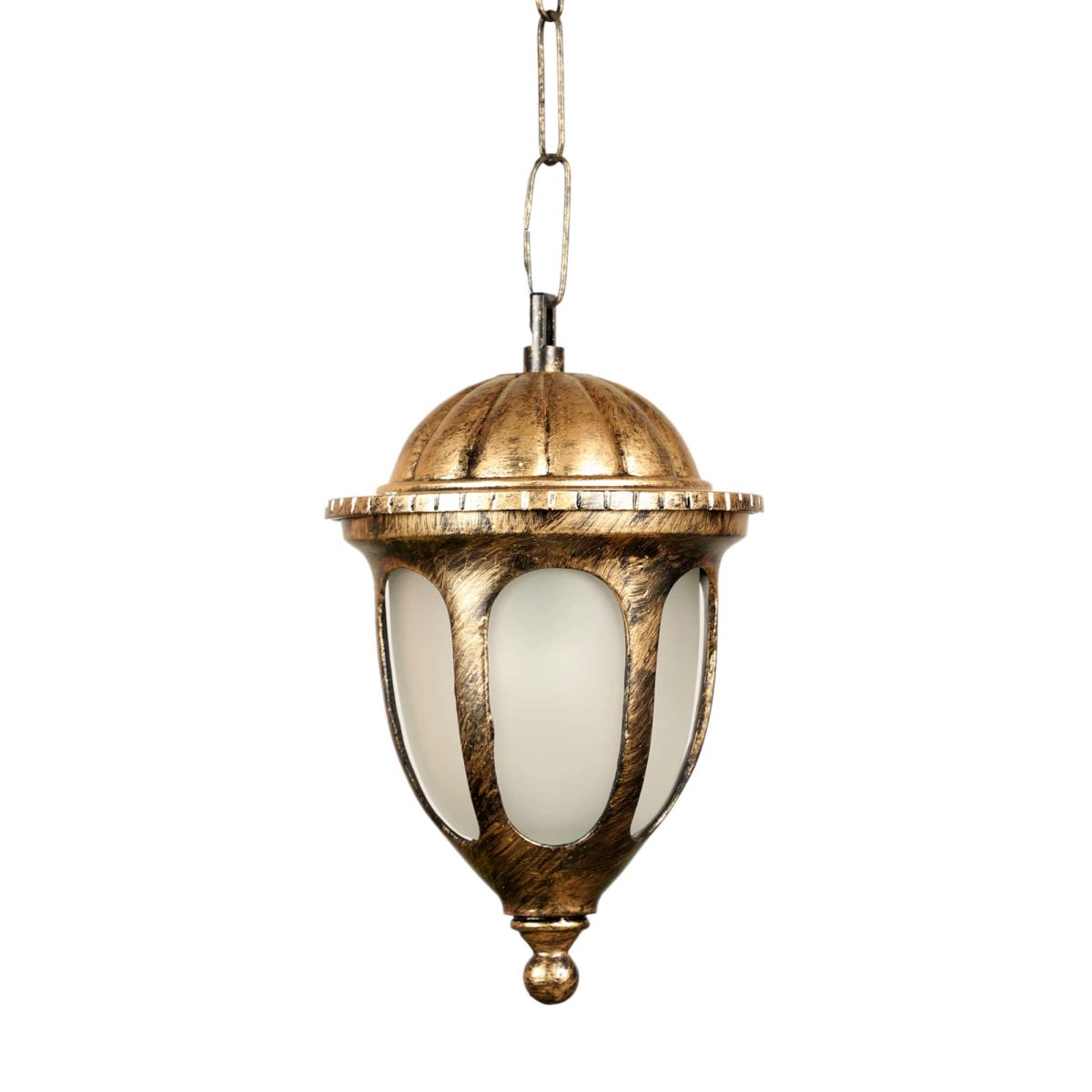 Traditional heavy duty aluminium die cast, outdoor hanging light in antique gold finish. It is maintenance free, comes with an E27 holder, only the change of lamp is required, which is available locally everywhere. There are many designs in a variety of finishes many of which are part of a family that go with other garden lights. .Application areas include building entrance passage, porch, terrace gardens, theme restaurants and bars, farm house, party venues, gazebo. Can be installed indoors also it it matches with the interiors. Matching gate Light – GL4781, Matching wall light – Wl2297. All design available in black color finish also.