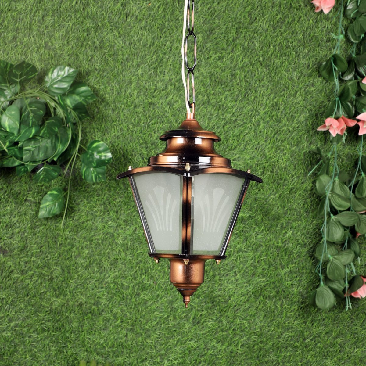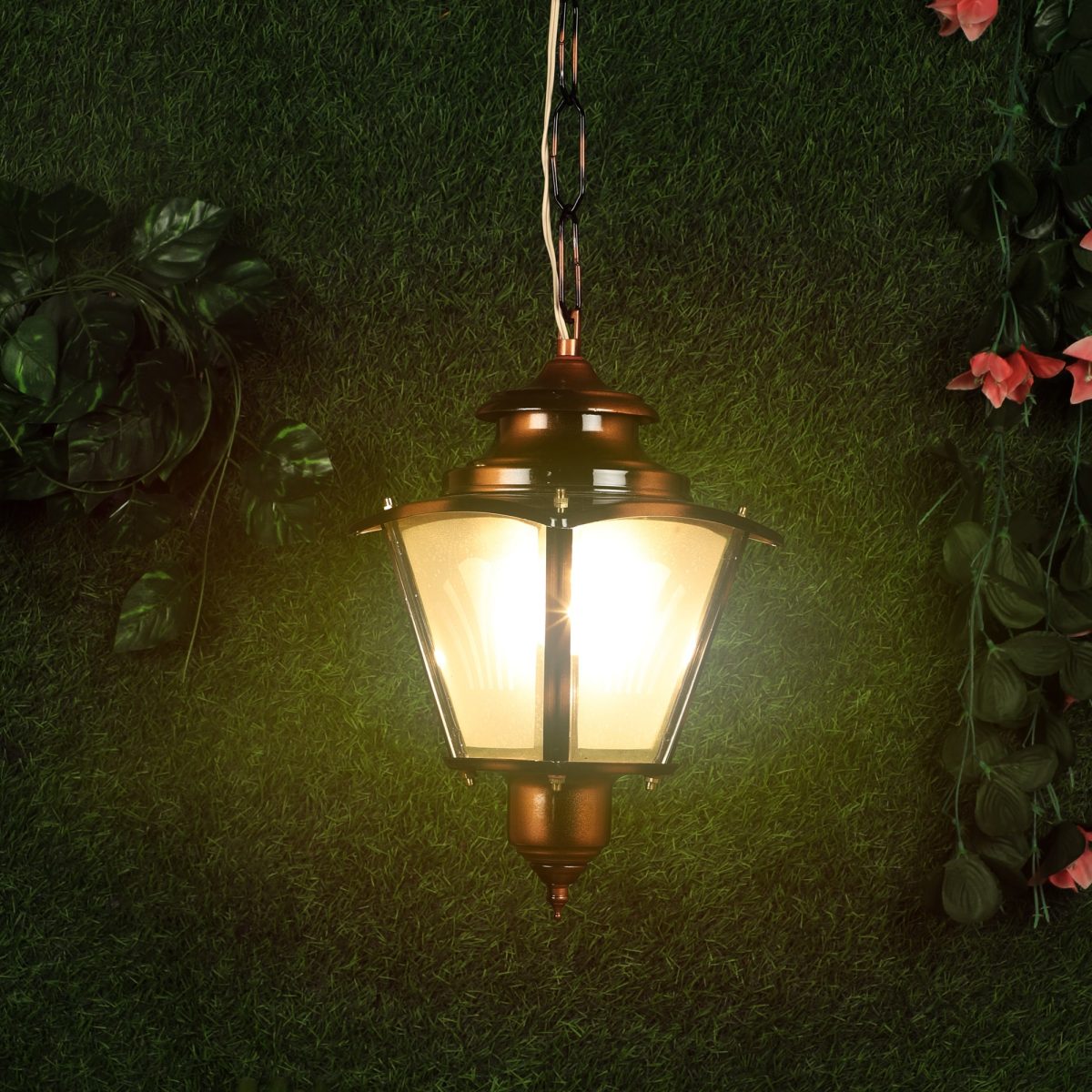 Traditional, aluminium sheet, premium one of top selling export quality outdoor hanging light in bronze. It is maintenance free, comes with an B22 holder, only the change of lamp is required, which is available locally everywhere. There are many designs in a variety of finishes many of which are part of a family that go with other garden lights. .Application areas include building entrance passage, porch, terrace gardens, theme restaurants and bars, farm house, party venues, gazebo. Can be installed indoors also it it matches with the interiors. Matching gate Light – GL4790, Matching wall light – WL2305. All options available in black finish also.