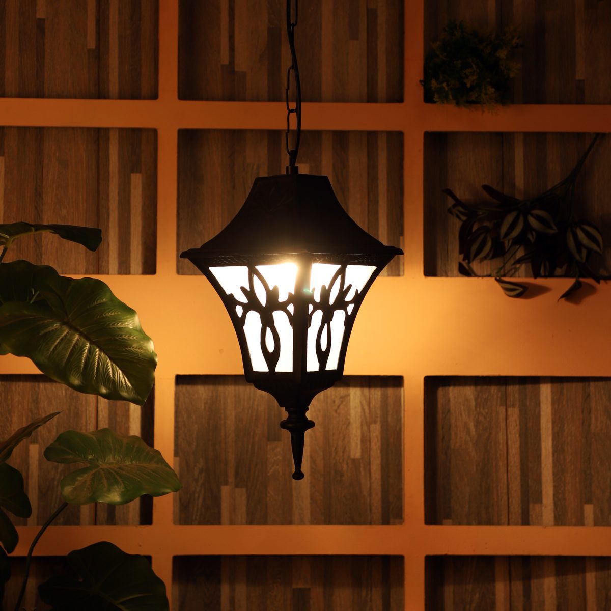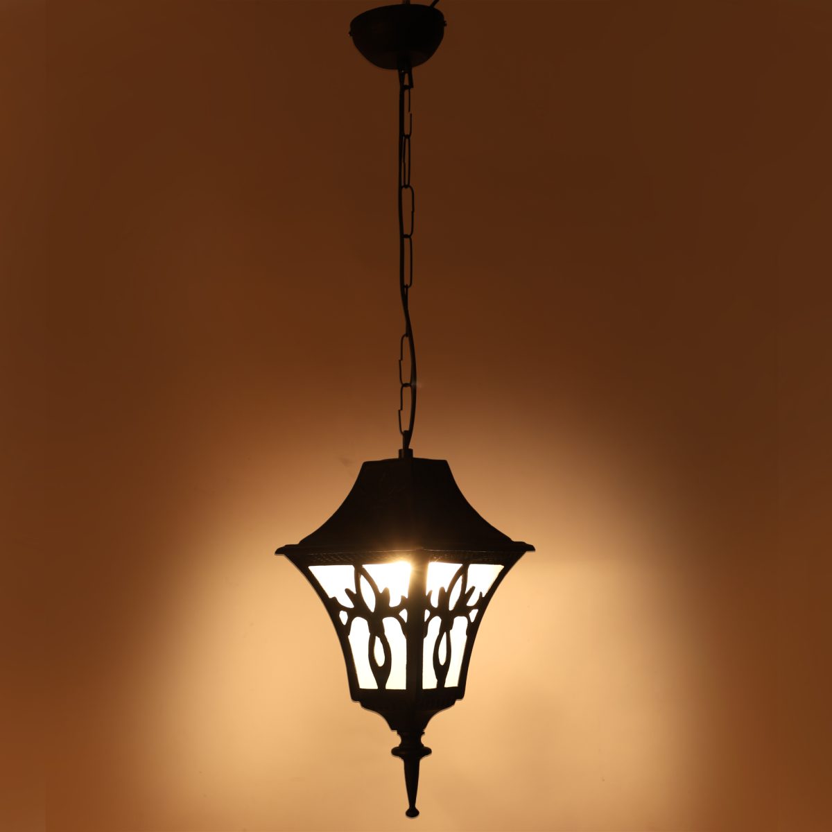 Traditional heavy duty aluminium die cast, outdoor hanging light in black finish. It is maintenance free, comes with an B22 holder, only the change of lamp is required, which is available locally everywhere. Application areas include building entrance passage, porch, terrace gardens, theme restaurants and bars, farm house, party venues, gazebo. Can be installed indoors also it it matches with the interiors. LAMP NOT INCLUDED.