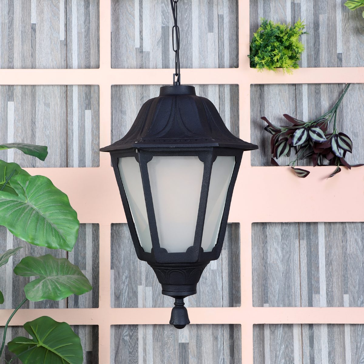 Traditional heavy duty aluminium die cast, outdoor hanging light in black finish. It is maintenance free, comes with an B22 holder, only the change of lamp is required, which is available locally everywhere. Application areas include building entrance passage, porch, terrace gardens, theme restaurants and bars, farm house, party venues, gazebo. Can be installed indoors also it it matches with the interiors. LAMP NOT INCLUDED.