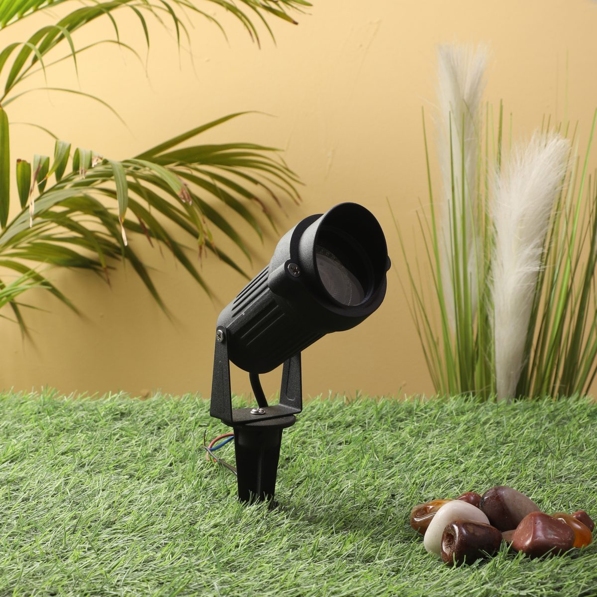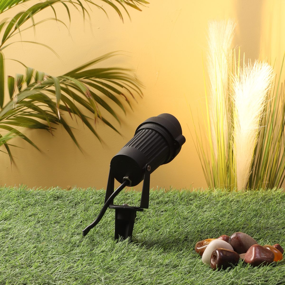 Aluminium die cast outdoor spike light It is maintenance free. It comes with a branded GU10 LED lamp with warm (yellow) light, which is available locally everywhere in different wattage and color temperatures. Designed to withstand the harsh conditions of the great outdoors while remaining stylish and functional. Spike lights provide the ultimate flexibility in lighting your garden as they can easily be repositioned when required to illuminate different shrubs and trees throughout the seasons. The head is adjustable allowing you to illuminate any area you desire. Easy for use in gardens small or large.IP54 rated, protection against splashed water.