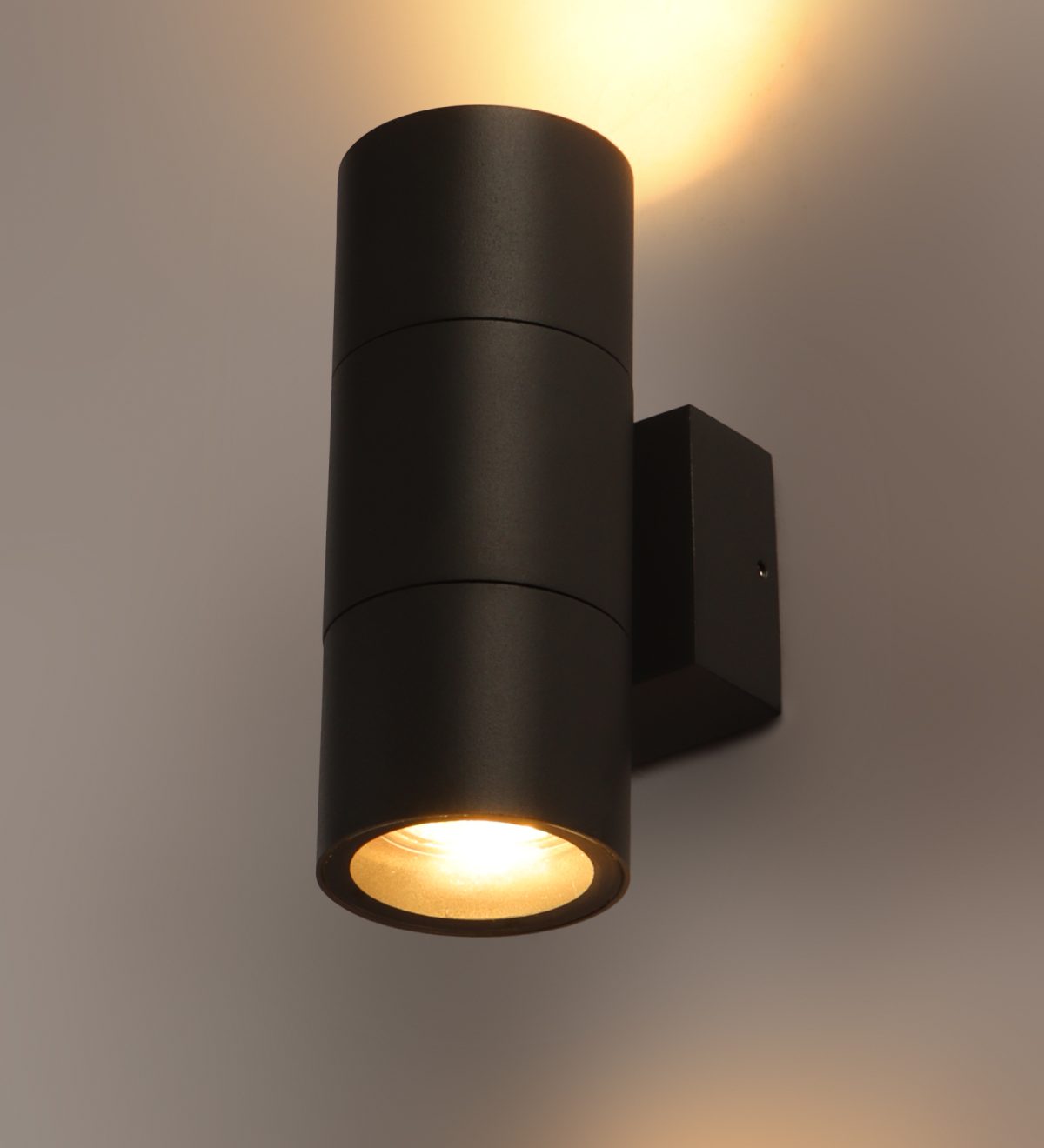 Aluminium die cast one of the top selling export quality modern cylindrical wall light, providing up and down lighting, available in a sophisticated grey finish, perfect to use outdoors. It is maintenance free, only the change of lamp is required which is available locally everywhere. Excellent for installing in many locations such as front doors, garden walls, sheds and garages, parking. Can be dimmed if used with a dimmable lamp. Rated at IP54 it is intended for exterior use it can also be installed inside if you wish. Lamp not included.