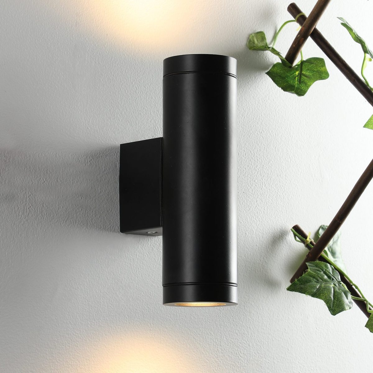 Aluminium die cast one of the top selling export quality cylindrical wall light providing up and down lighting available in black finish, perfect to use outdoors. It is maintenance free,only the change of lamp is required which is available locally everywhere. Excellent for installing in many locations such as front doors, garden walls, sheds and garages, parking. Can be dimmed if used with a dimmable lamp. Rated at IP54 it is intended for exterior use it can also be installed inside if you wish. Lamp not included.