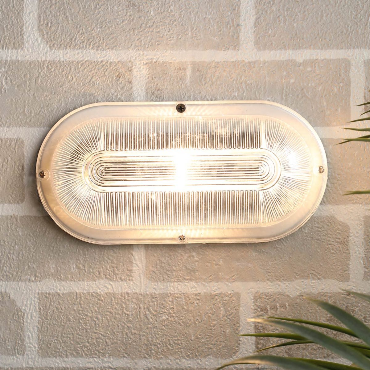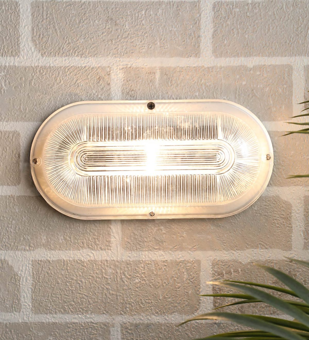 Solid heavy aluminium die cast maintenance free, export quality bulkhead light with high quality poly carbonate, suitable for exterior lighting.These lights look fab mounted on bare wood or brick. IP44 rated, providing protection from sprayed water in any direction and making this light perfect for use outdoors. It has B22 holder. You can of course swap out the bulb for one that is dimmable, has a higher light output or a different color temperature.