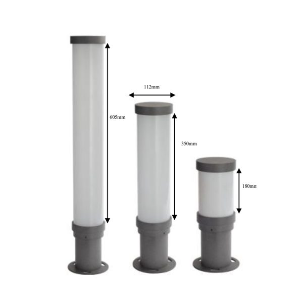 SUPERSCAPE premium aluminium 12 inch 12 watt LED bollard grey with top branded LED driver and acrylic diffuser 3K K1291-S