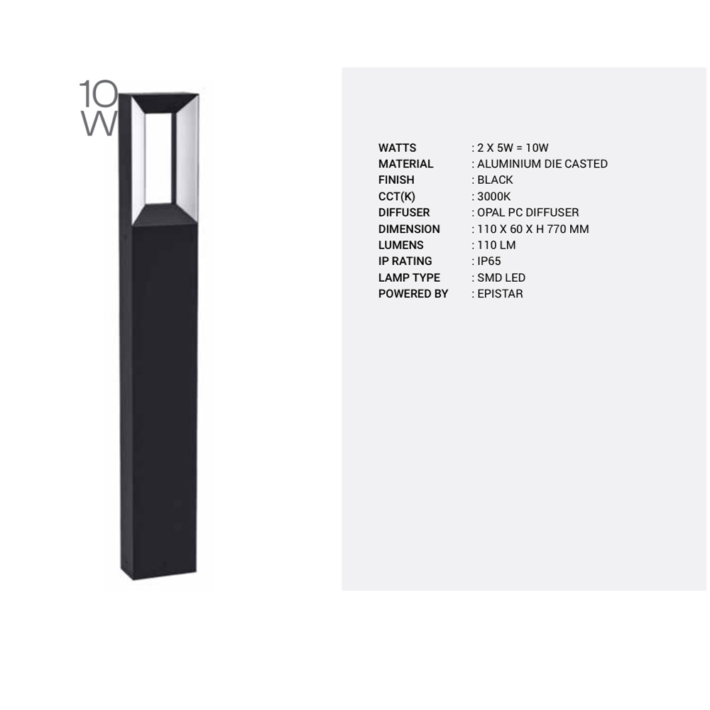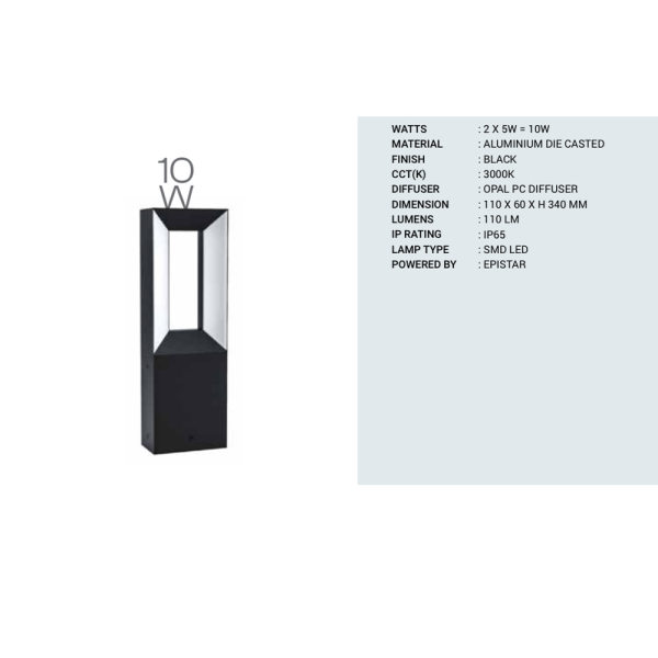 SUPERSCAPE premium aluminium black finish 2x5 watt 13.5 inch IP65 bollard 3K PR6353