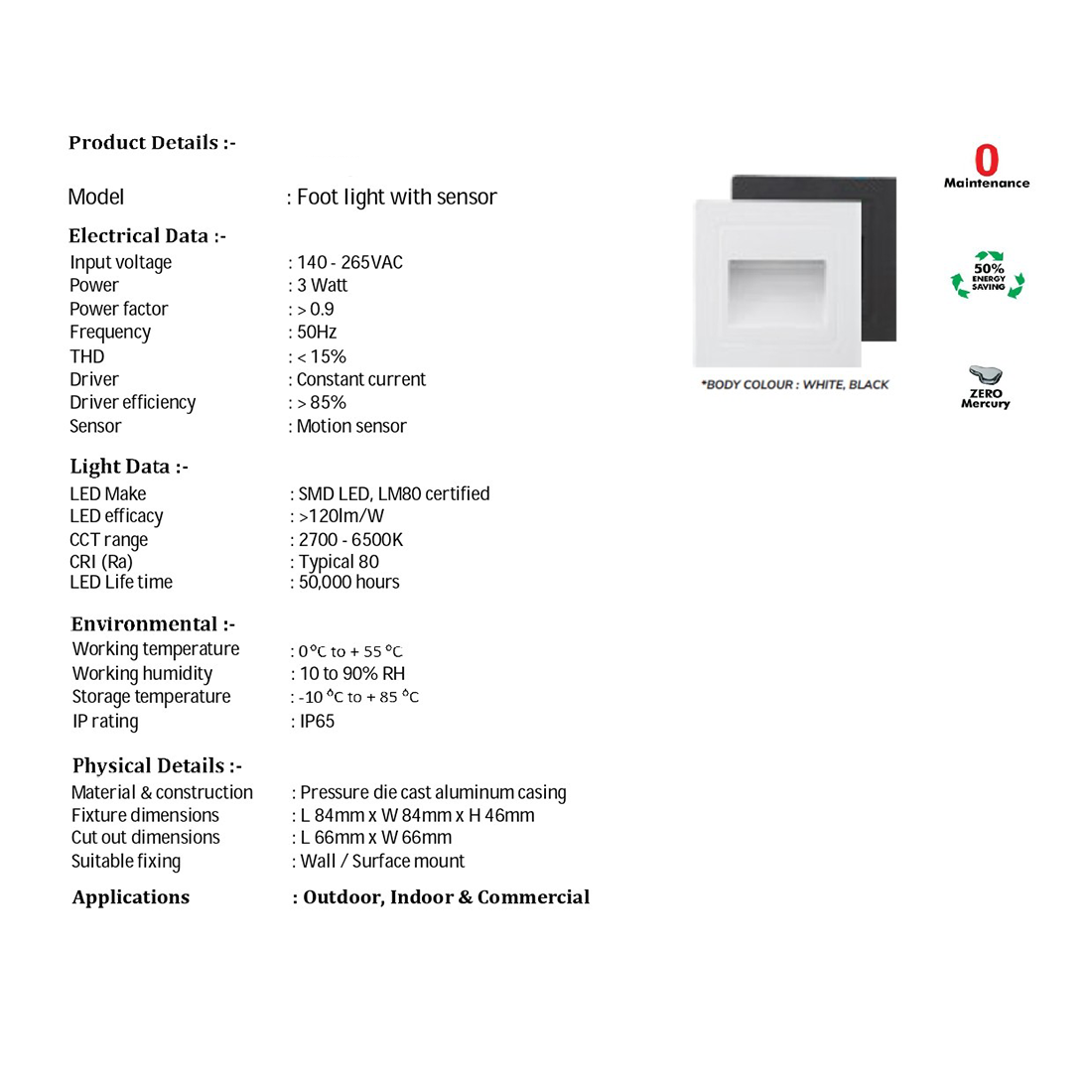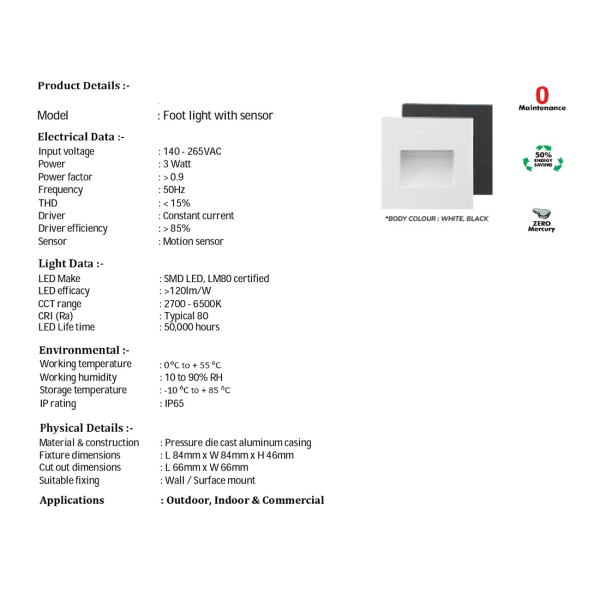 Be the first to review “SUPERSCAPE premium aluminium black finish 3 watt IP65 motion sensor foot light concealed for outdoor and indoor FA6221”
