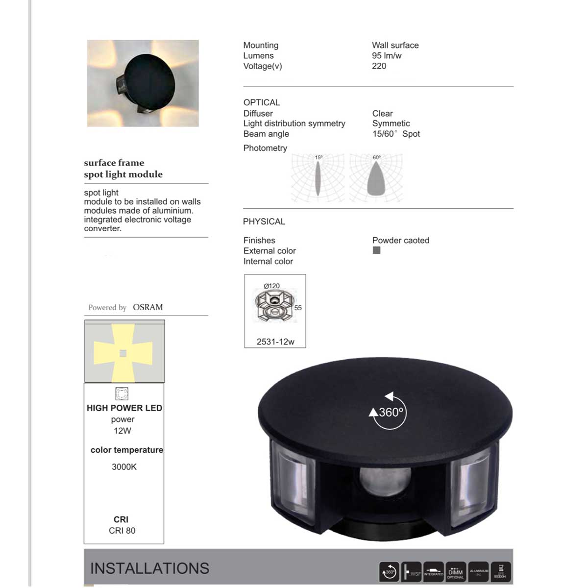 | Total Wattage (W) | 12W |