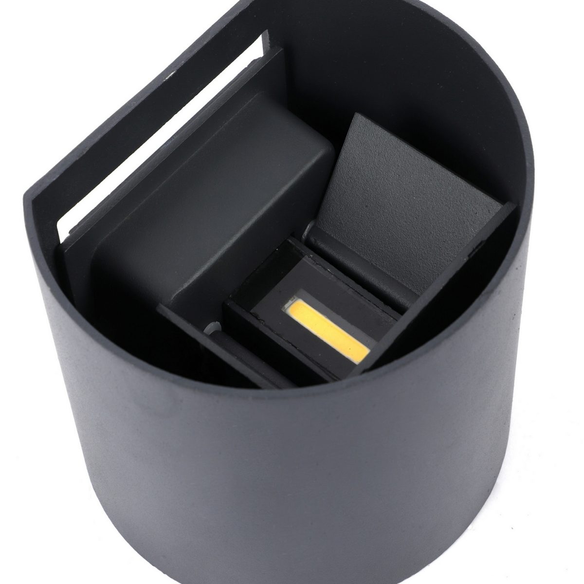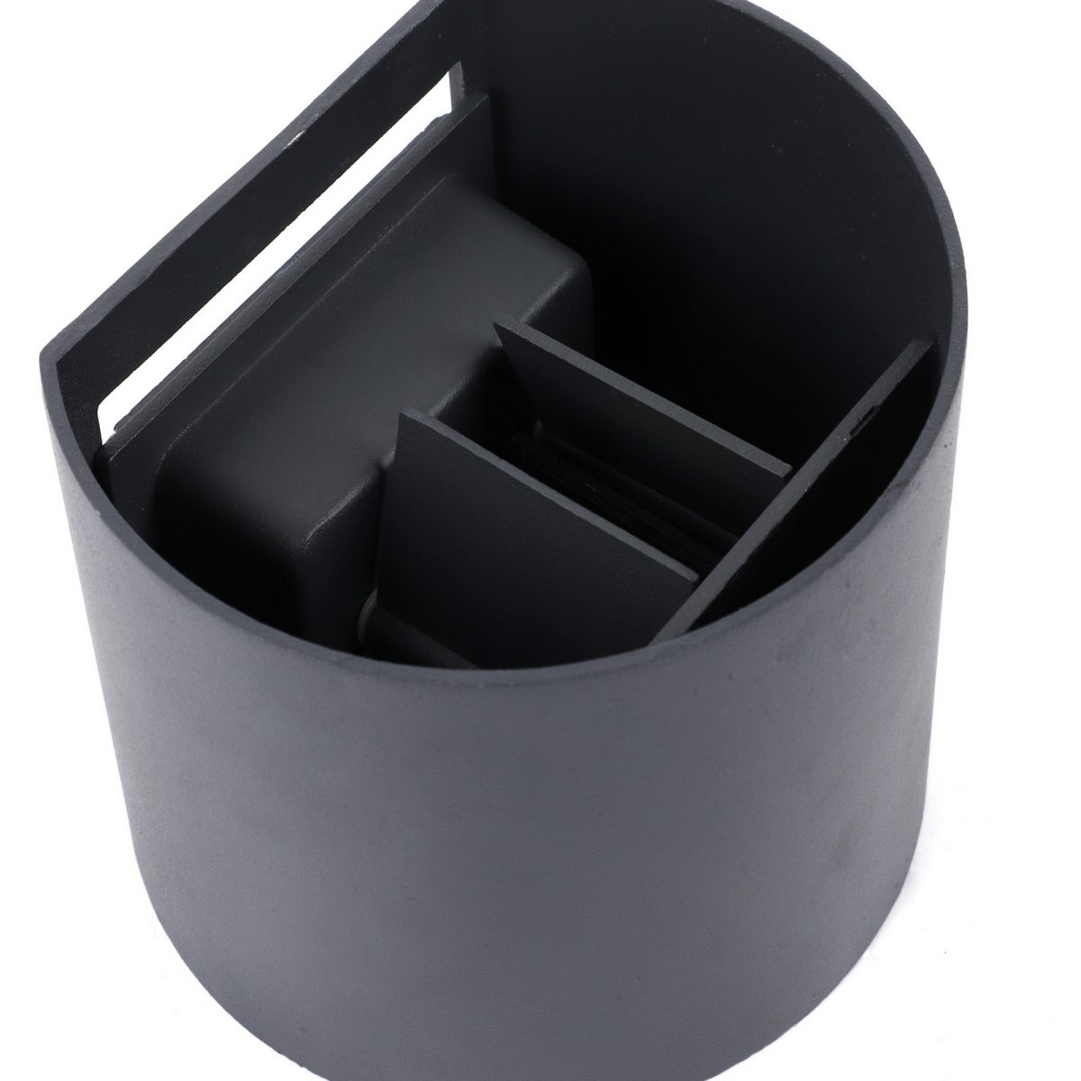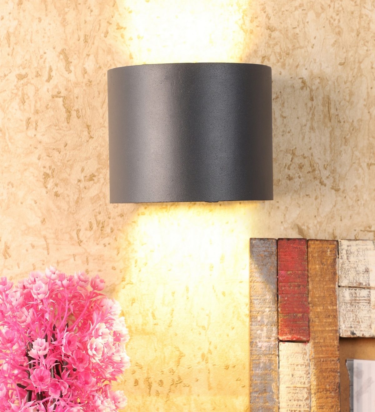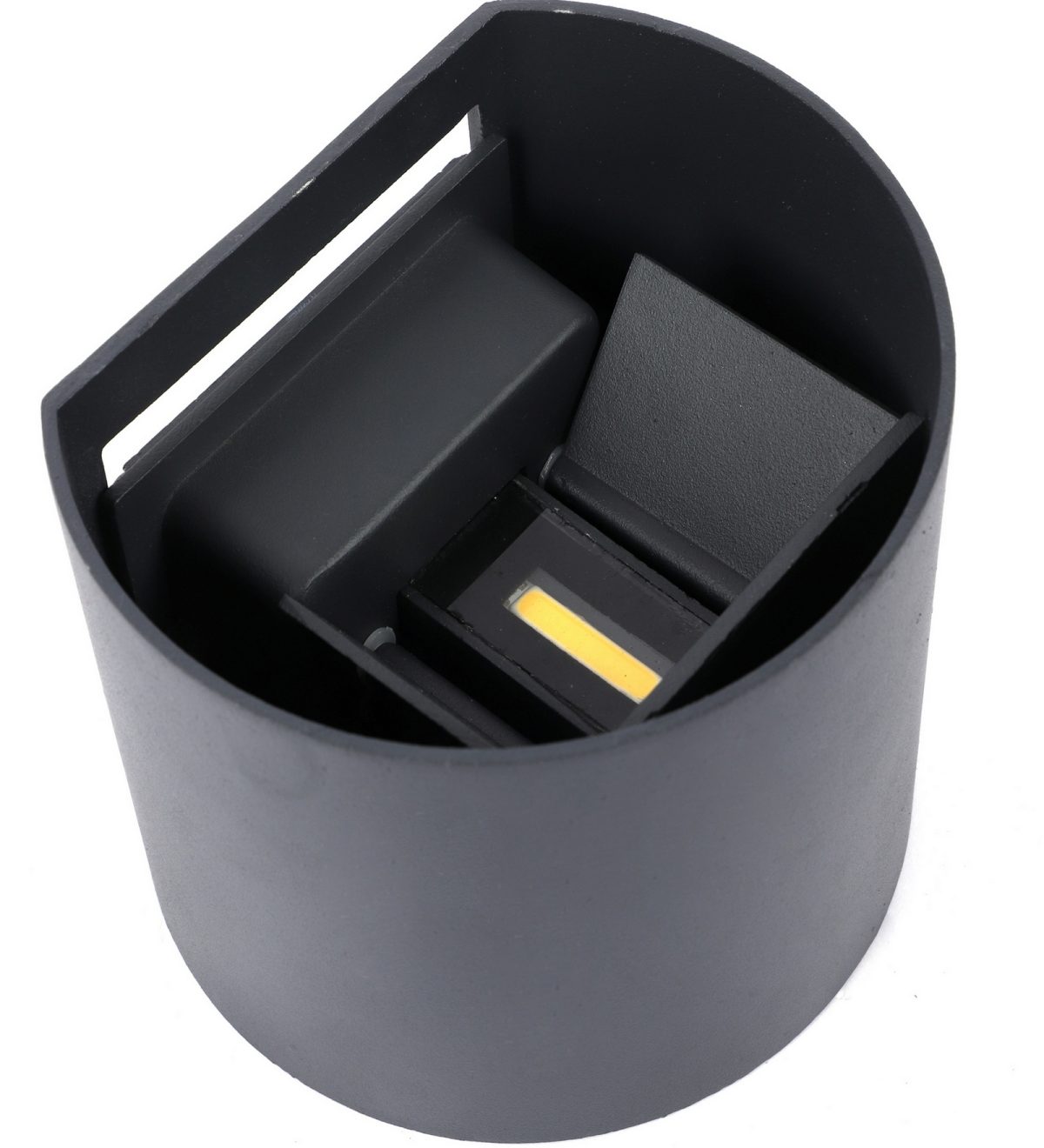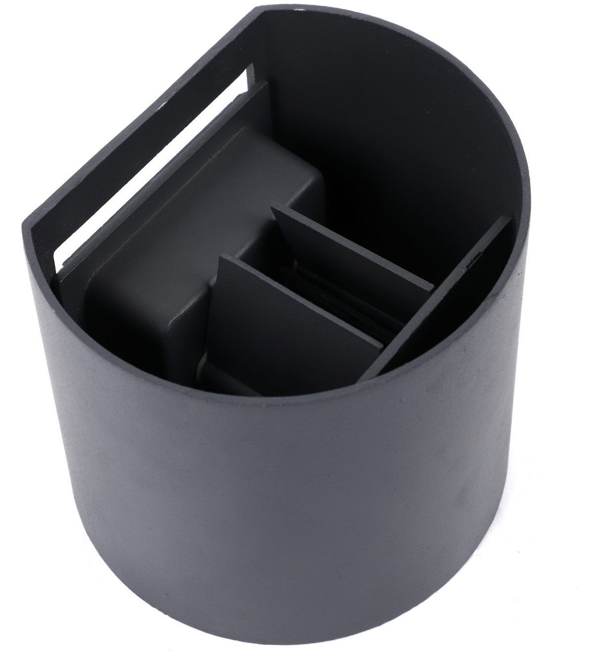 Adjustible beam vertical, round up and down aluminum die cast outdoor wall light in grey finish using high quality LED and driver with high success rate having less than 0.5% replacement. It is a two way light having bright light output. The uniqueness of this light is that the width of the beam can be adjusted by adjusting the flaps as shown in the image. This design is preferred by the lighting designers, builders and architects. It can be used in both indoor and outdoor applications such as stair case walls, terrace walls, outdoor walls, boundary walls, open parking, stilt parking, basement parking, passage walls, entrance pillars, front elevation. IP54 rated. Protection against splashed water can be customised as per requirement for bulk quantities. Square shaped option also available with code WL2479.