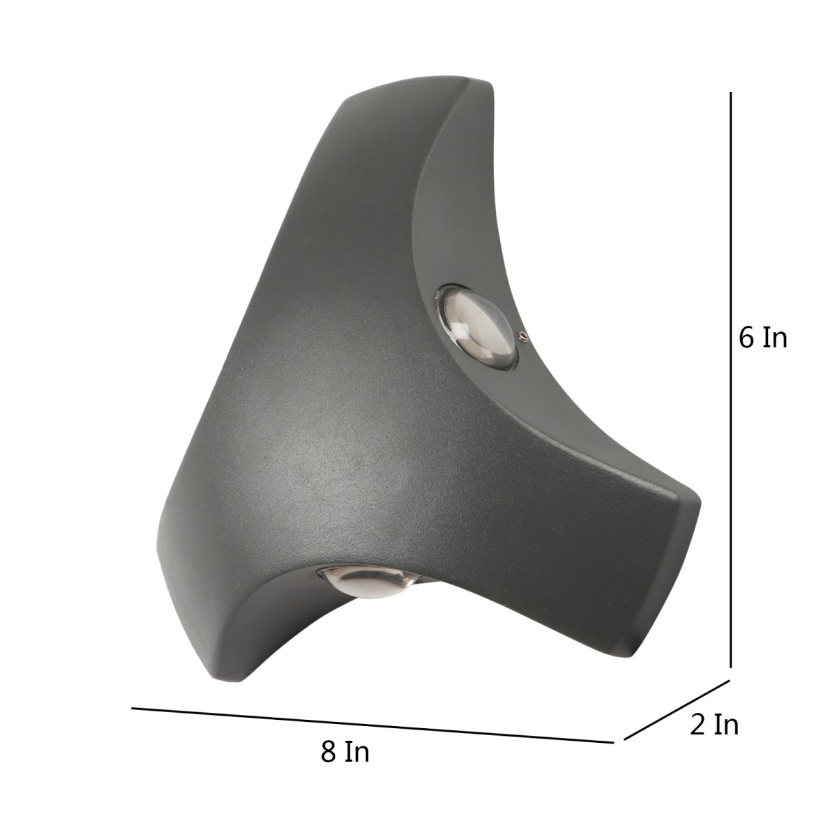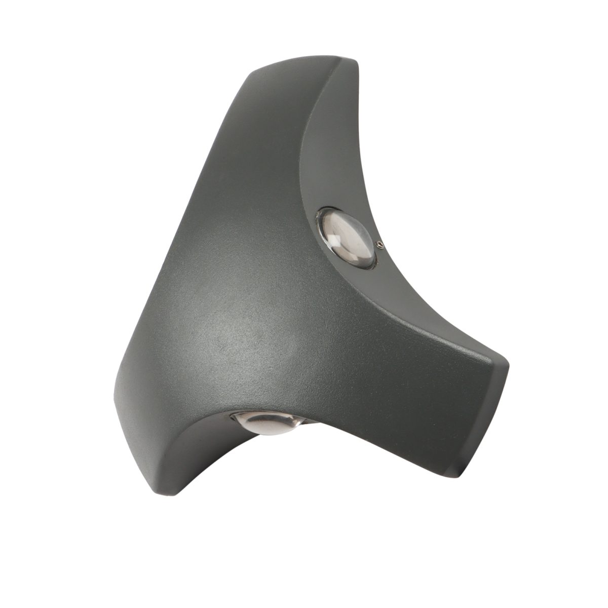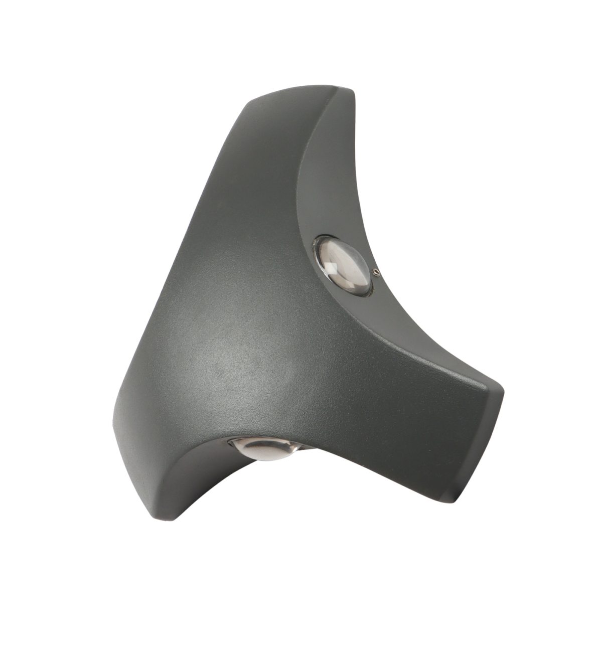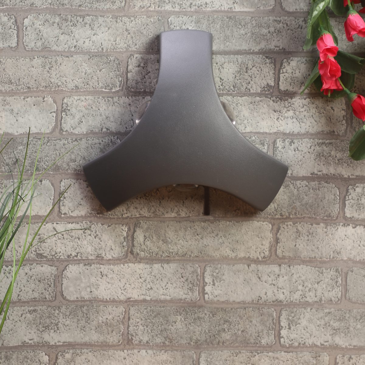 Elegant, nicely shaped three way aluminum die cast outdoor wall light in gray finish using high quality LED and driver with high success rate having less than 0.5% replacement. This design is preferred by the lighting designers to create a special lighting effect. Can be used in both indoor and outdoor applications such as stair case walls, terrace walls, outdoor walls, boundary walls, open parking, stilt parking, basement parking, passage wall. IP54 rated. Protection against splashed water can be customized as per requirement for bulk quantities.
