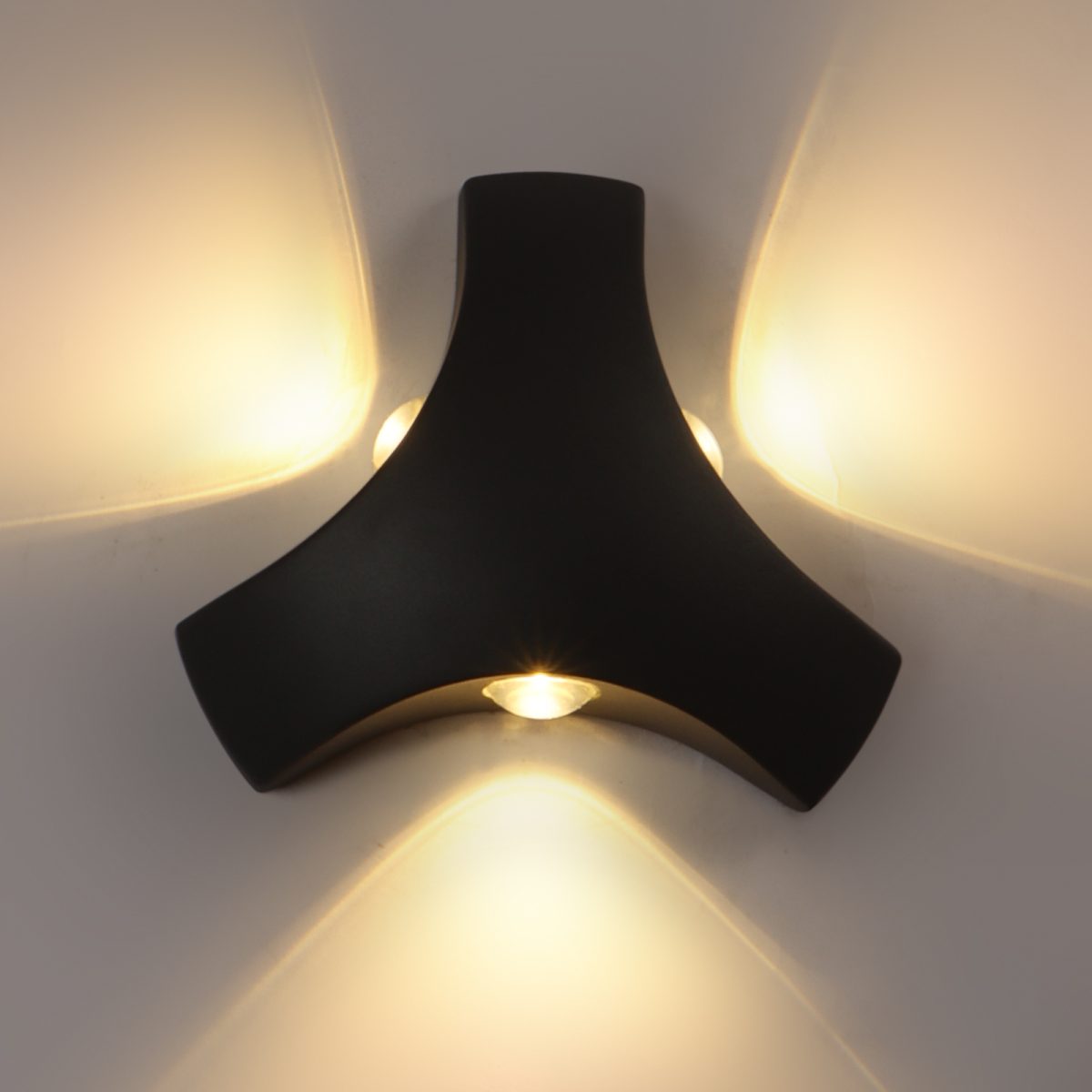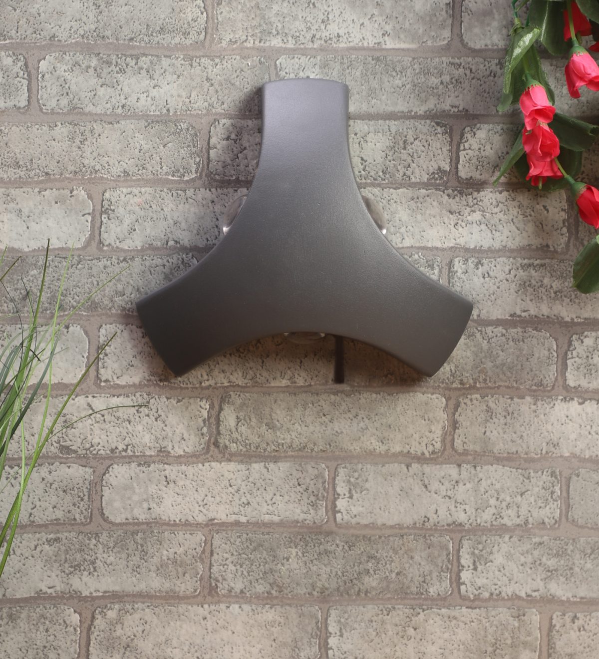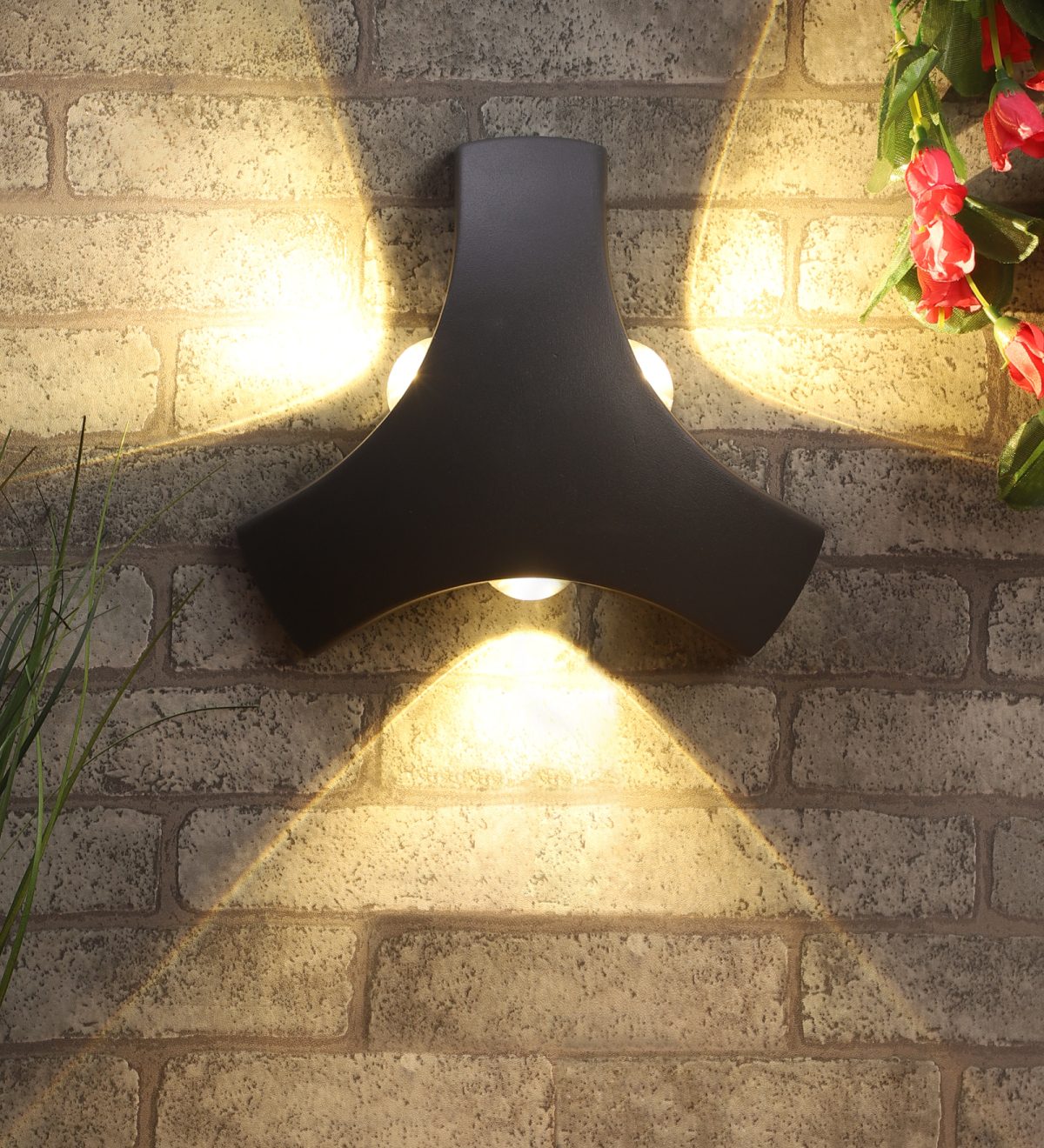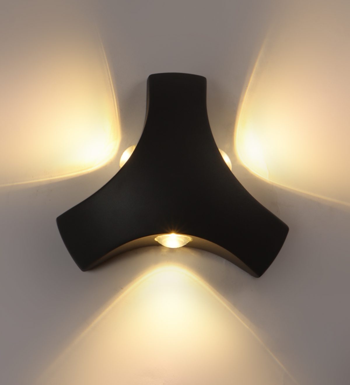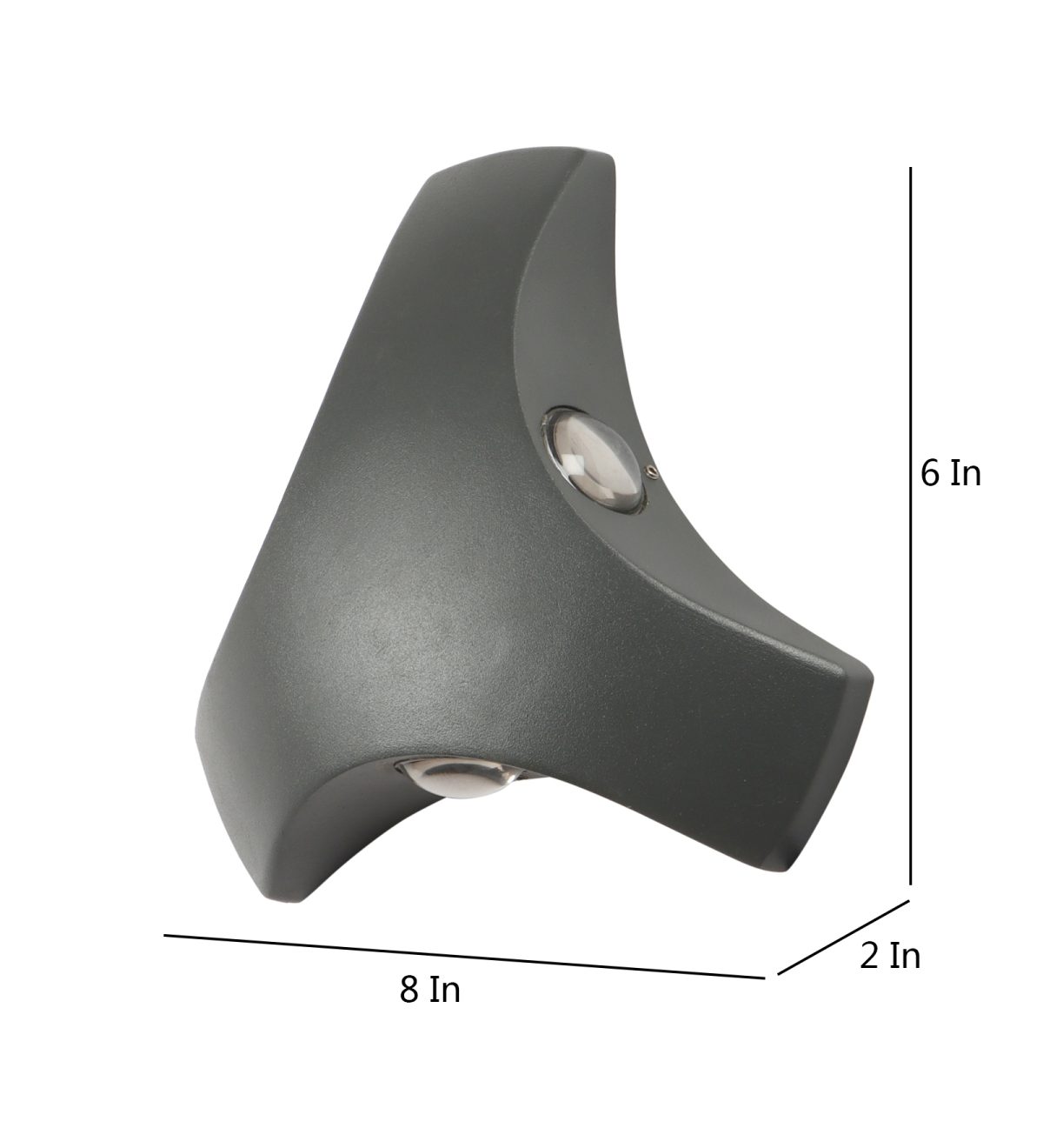 Elegant, nicely shaped three way aluminum die cast outdoor wall light in gray finish using high quality LED and driver with high success rate having less than 0.5% replacement. This design is preferred by the lighting designers to create a special lighting effect. Can be used in both indoor and outdoor applications such as stair case walls, terrace walls, outdoor walls, boundary walls, open parking, stilt parking, basement parking, passage wall. IP54 rated. Protection against splashed water can be customized as per requirement for bulk quantities.