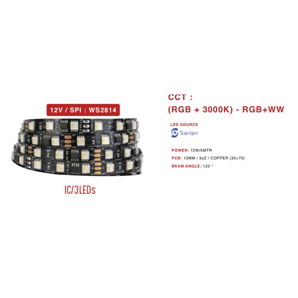 Ultra Premium 5050 12V 60 LED per meter strip 72 watt 12 mm programmable – SPI WS2814 digital series RGB + warm white 5 meter roll without driver.