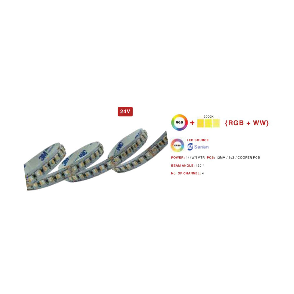 Ultra Premium 5050 24V 120 LED per meter strip 144 watt 12 mm RGB + warm white 5 meter roll without driver.