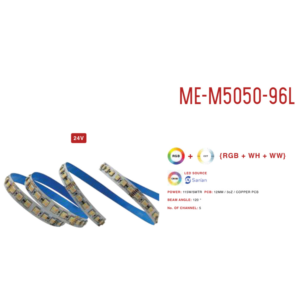 Ultra Premium 5050 24V 120 LED per meter strip 144 watt 12 mm RGB + warm white 5 meter roll without driver MEM210
