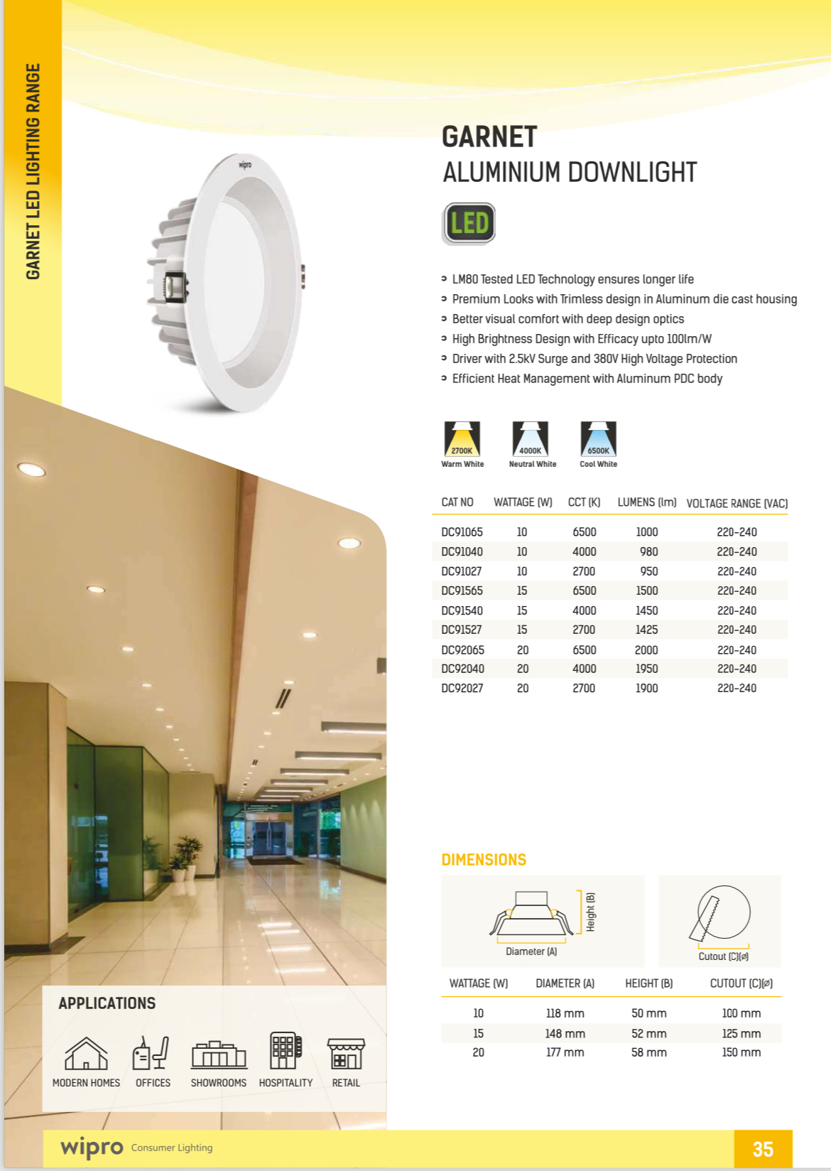 Wipro Garnet 15 Watt Aluminium Down Light 2700K WP1354