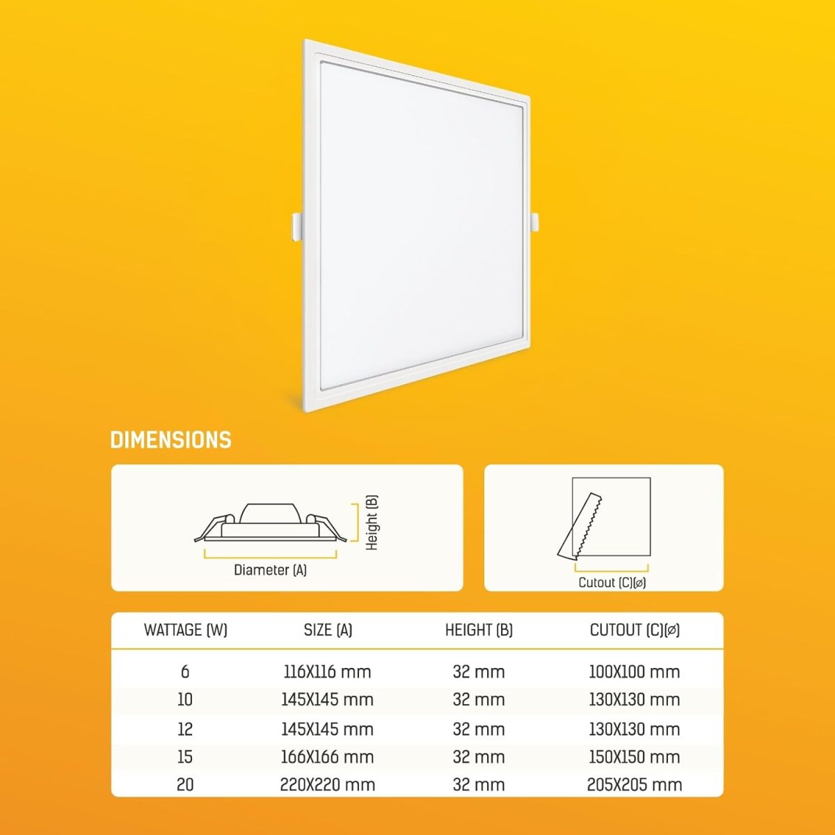 WIPRO GARNET 15 WATT WAVE INFINITY PANEL SQUARE 2700K WP1225