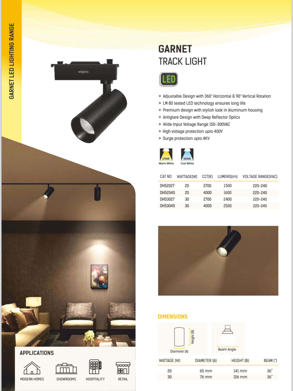 Wipro Garnet 20 watt track light black finish 4000K WP1318