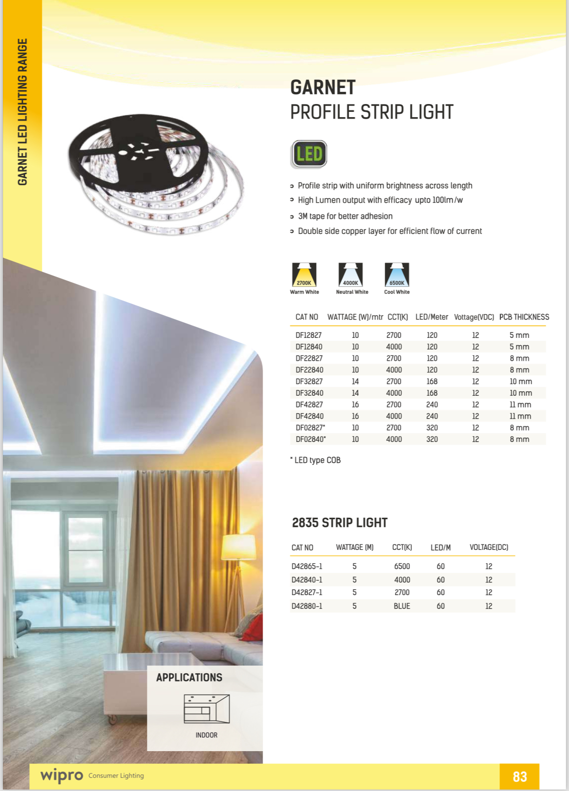 Wipro Garnet 2835 LED strip light 5 watt and 60 Led per meter 6500K without driver WP1503