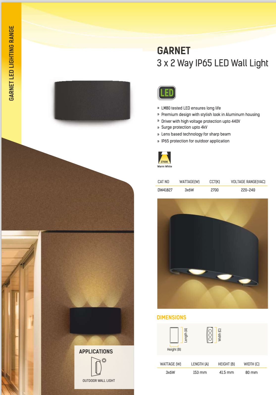 Wipro Garnet 3 x 2 way 18 watt IP65 LED wall Light