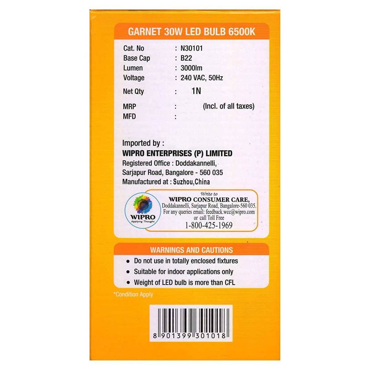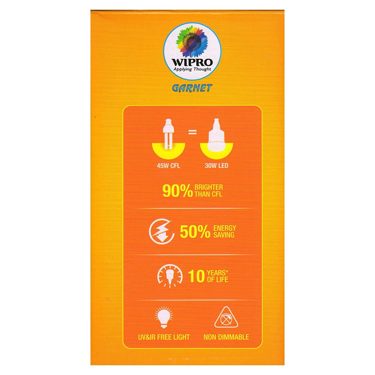 The Garnet 30W LED Bulb saves 85% energy and provides more brightness and good light distribution, through its innovatively designed optics. Following features makes the Wipro Garnet 30W LED Bulb the best in class lighting solution