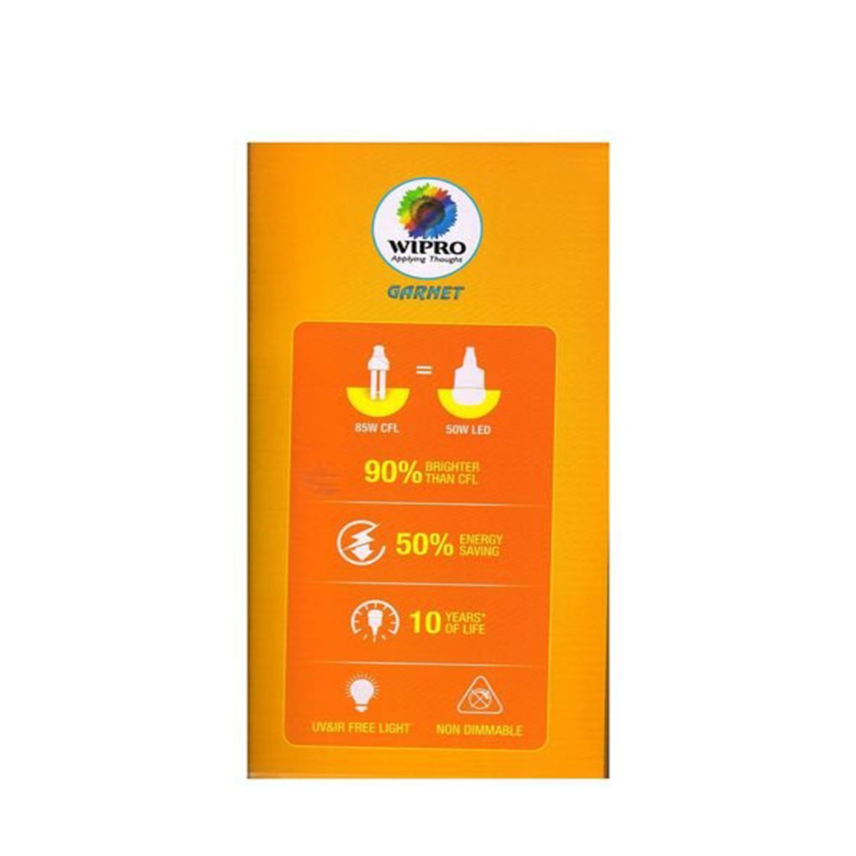 The Garnet 50W LED Bulb saves 85% energy and provides more brightness and good light distribution, through its innovatively designed optics. Following features makes the Wipro Garnet 50W LED Bulb the best in class lighting solution