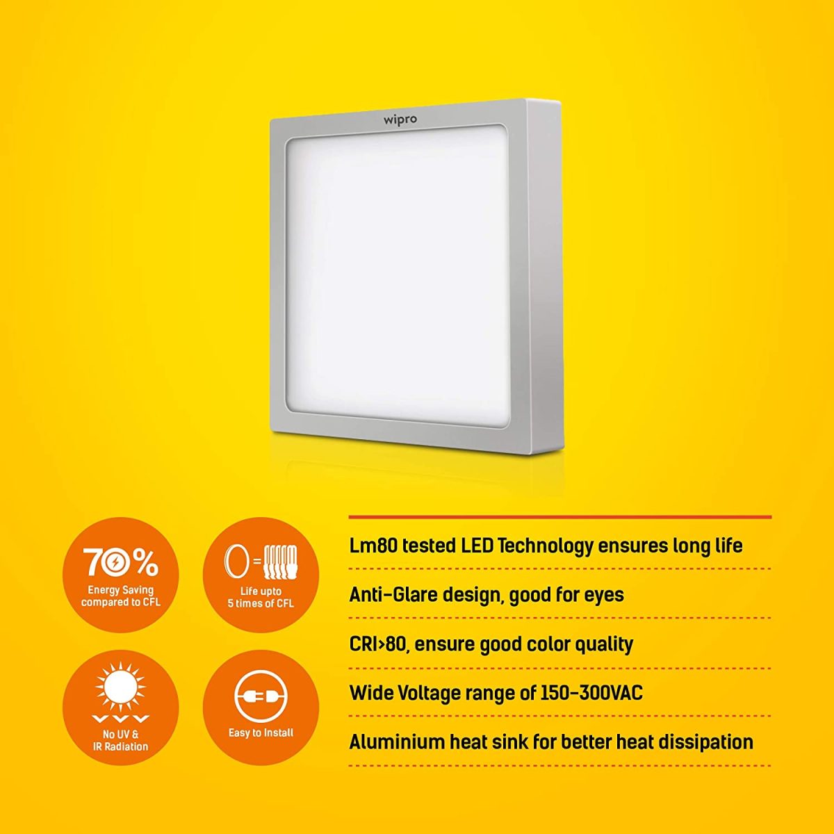 A slim and trimless surface mounted LED panel with edge-lit LEDs that provides soft and glare free light for ambient lighting and imparts a sense of luxury by improving the overall aesthetics with its screw less design. Features that makes the Wipro Garnet 6W Square Trimless Surface Panel the best in class lighting solution are