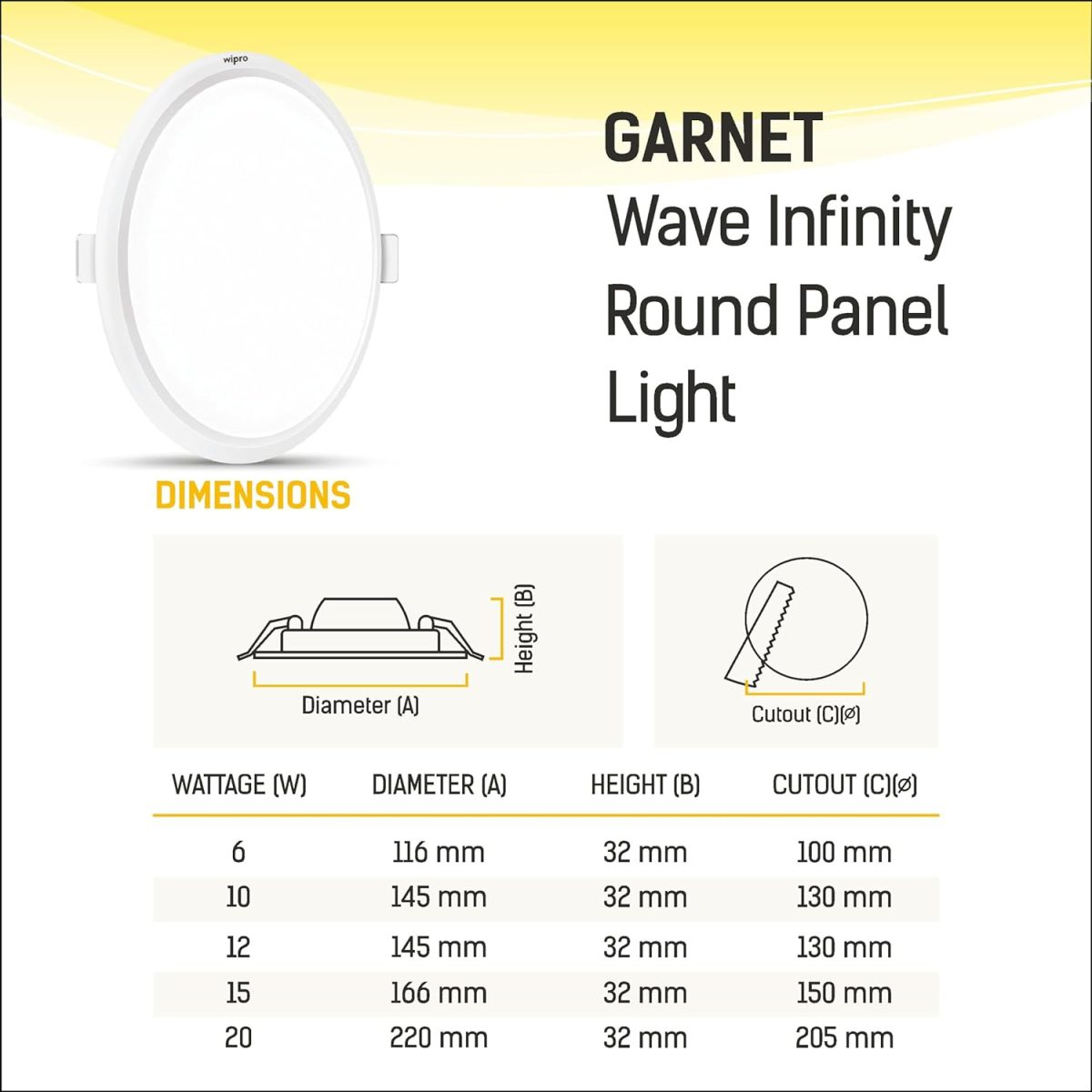 WIPRO GARNET 6 WATT WAVE INFINITY PANEL ROUND 4000K WP1208