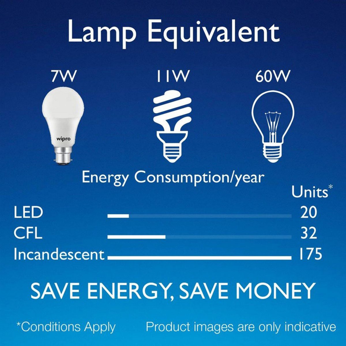 The Garnet 7W LED Bulb saves 80% energy and provides light distribution in all directions, through its innovatively designed optics. Following feature makes the Wipro Garnet 7W LED Bulb the best in class lighting solution