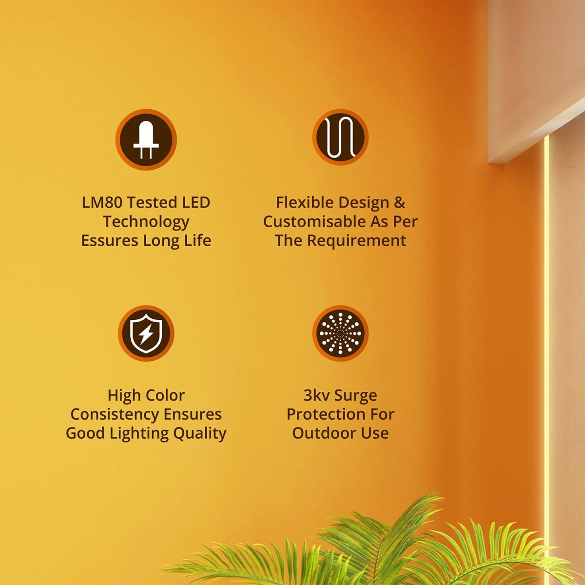 Uniform High Brightness: The Wipro Garnet Strip has a strong and high-quality LED that provides uniform light output across length adding vibrant colours to your home.