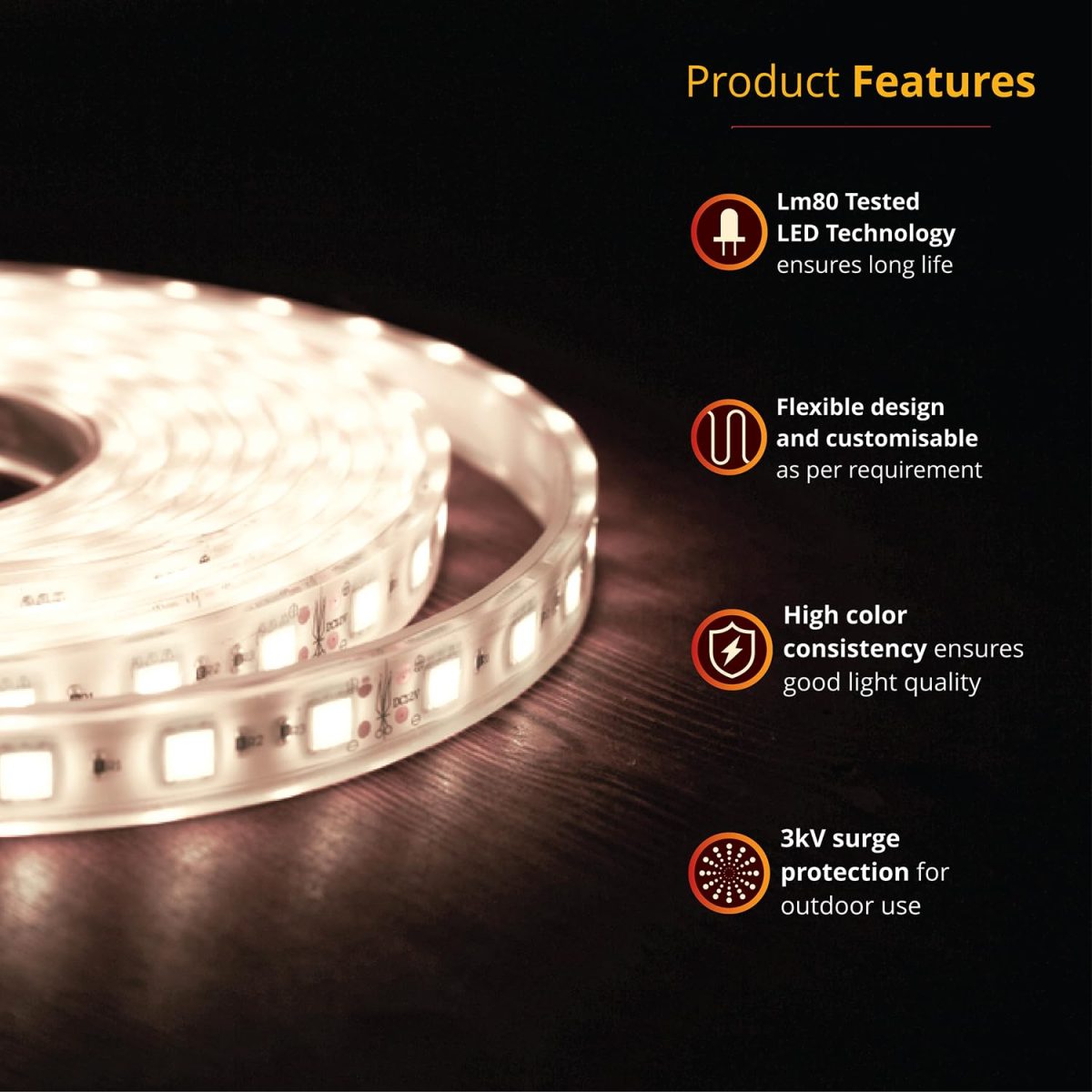 Wipro Garnet IP65 LED Strip light 6 watt and 60 LED per meter 50 meter roll orange WP1514