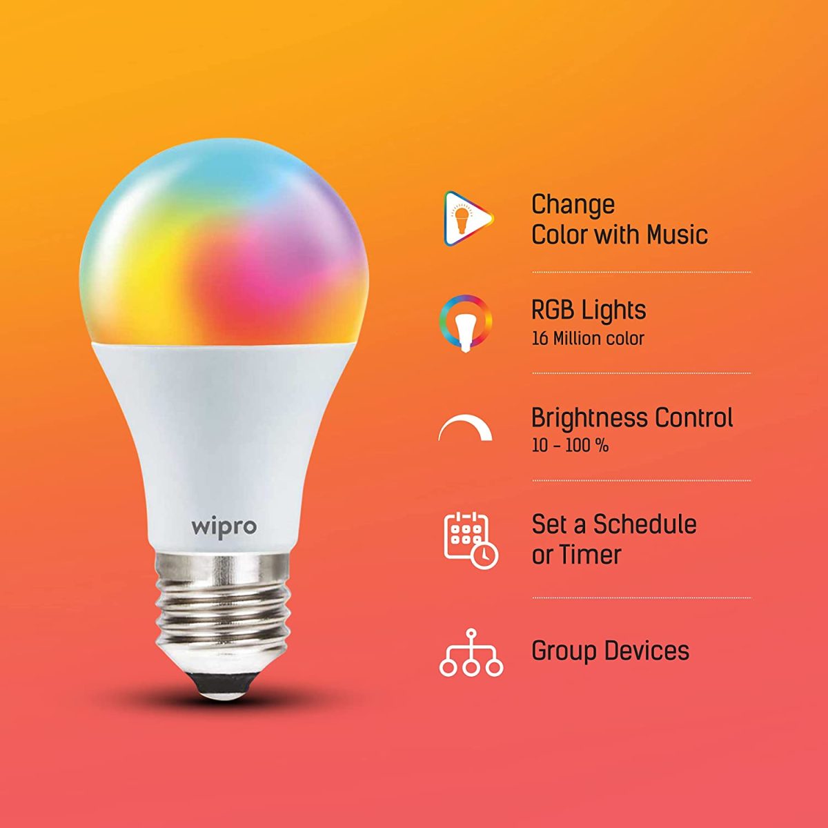 WIPRO GARNET SMART WiFi LED BULB 9W RGB PLUS CCT B22 NS9400 WP1260