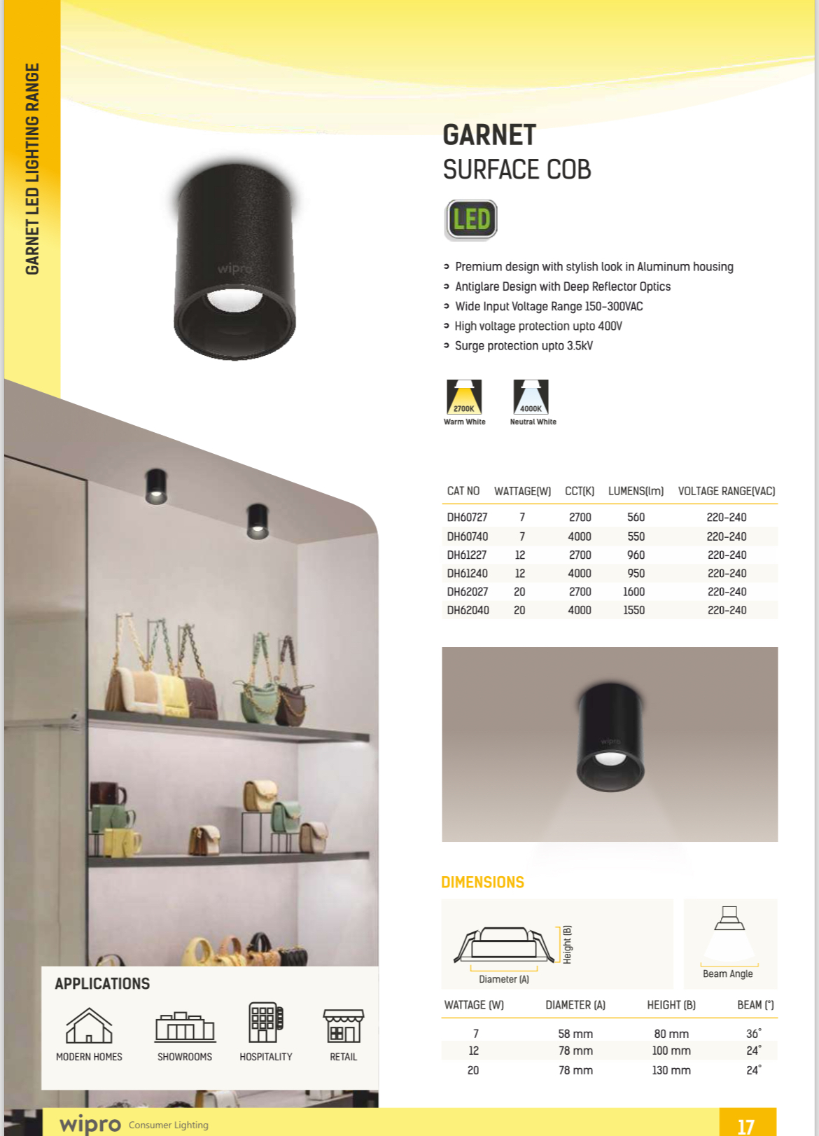 Wipro Garnet Surface COB cylinder 7 watt 4000K WP1310
